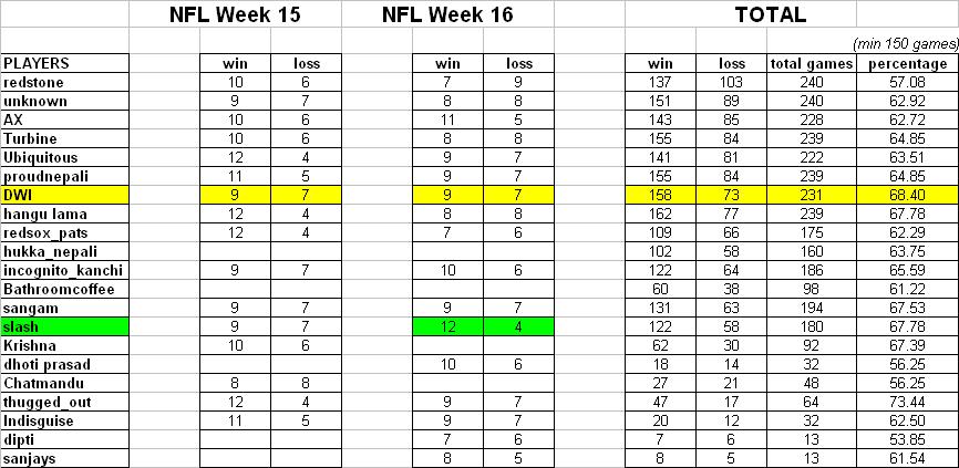 congratz to slash bro for great win..... it seems all were in festive mood... the win avg have down alot... i will take 2nd finish any week :) DWI still leads the league...