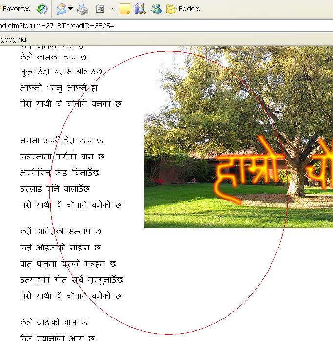 लौ न नि , यहाँ त नया चौतारी बनायेर सान्ननीले उधुम गरिसकिचन, आफुलाई भने चियाउने सम्मनि फुर्सत् भा हैन, गूड् जब सान्नानी ग्वाँचेको कथा पुरानै रैछ, तर फेरि पनि पढें, फेरि राम्रो ला'गो! लौ जम्मै लाई जदौ, गीत् बनाम्दै गरौँ है