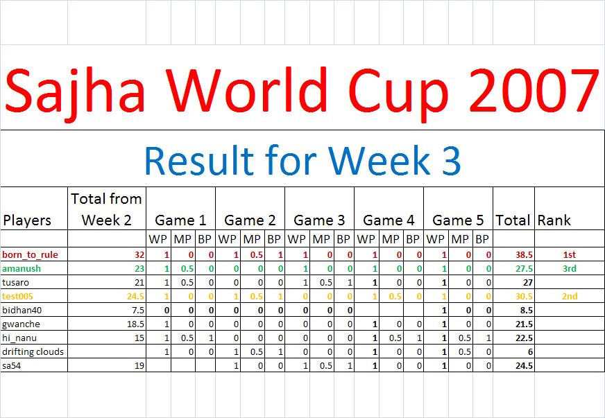 Here is the result after the end of WEEK 3: Congratulations for hi_nanu for three 'man of the matches' this week ....you played awesome innings...hats off !!!