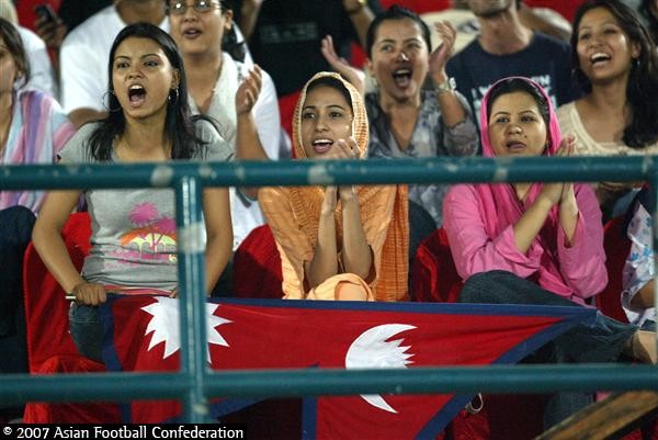 Hip Hip Hurray Hip Hip Hurrya Nepali supporters in stadium with Nepali Flag