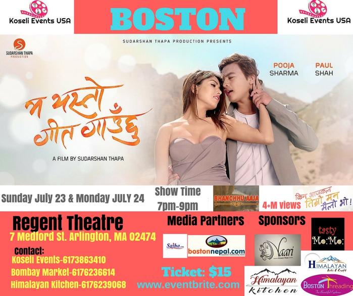 Venue: Regent Theatre, 7 Medford Street, Arlington, MA Date: Sunday July23 & Monday July24 Showtime: 7pm-9pm Ticket: $15 Available at Bombay Market, Somerville Himalayan Kitchen, Somererville Also available Online www.eventbrite.com Brought To You By: Koseli Events USA
