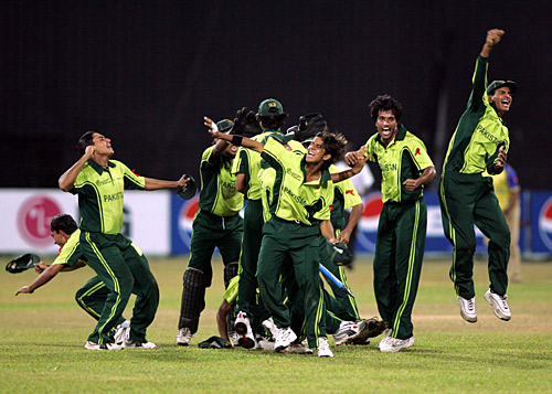 A jubilant Pakistan U-19 celebrate winning the World Cup, India v Pakistan, Under-19 World Cup final, Colombo, February 19, 2006